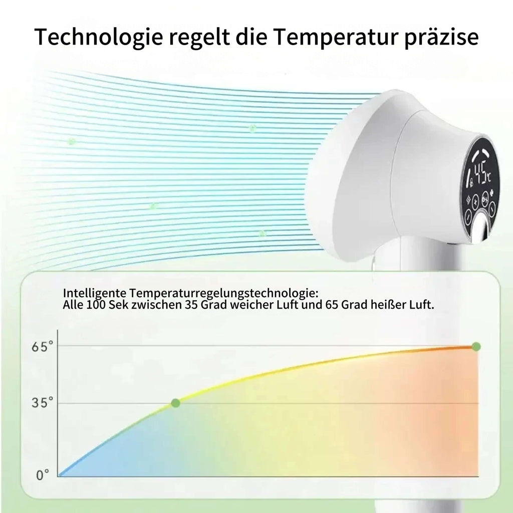 Der Felltrockner nutzt eine optimale Kombination aus warmer Luft und sanftem Luftstrom, um das Fell deines Hundes effektiv zu trocknen, ohne die empfindliche Haut zu reizen.
